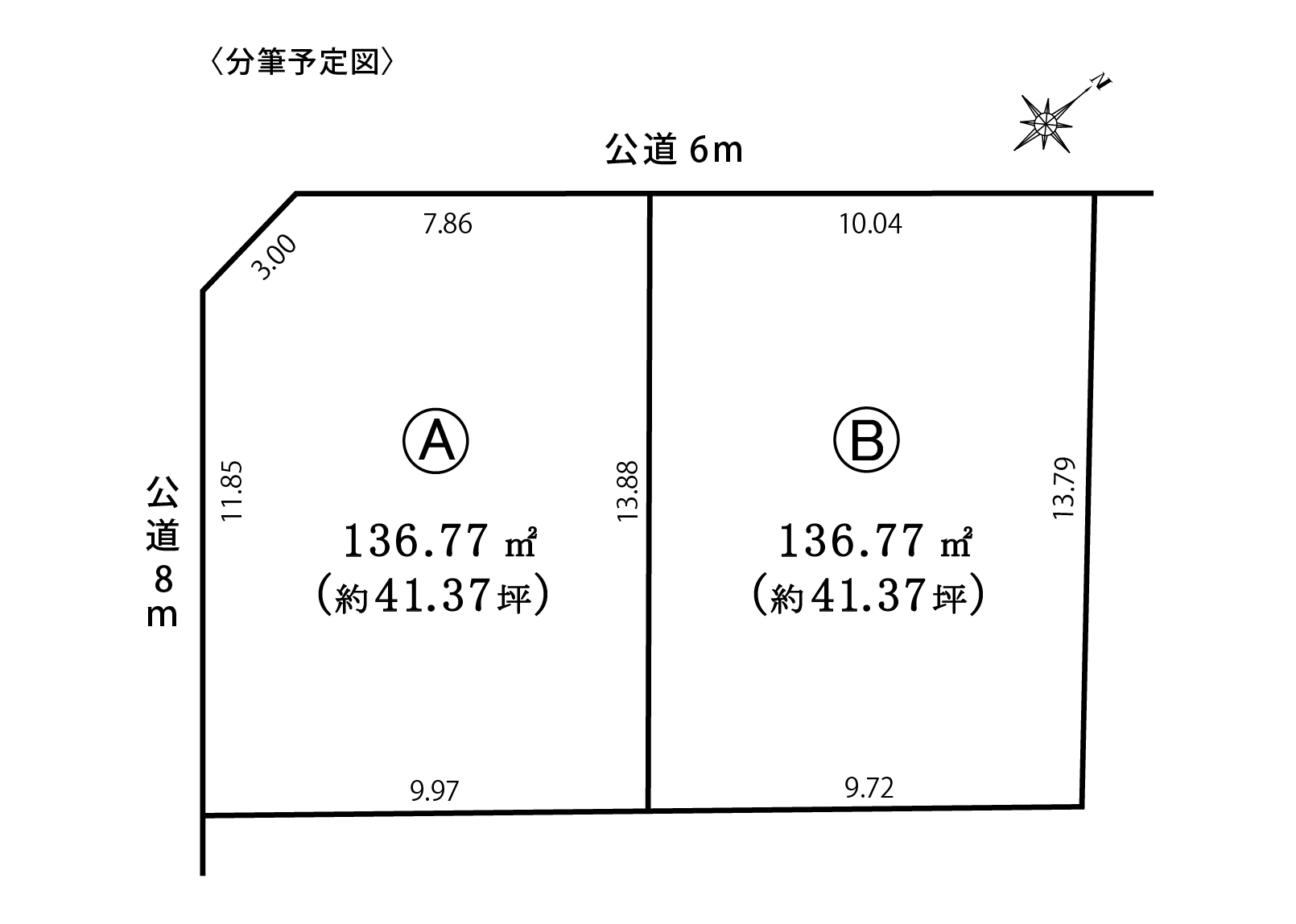 土地面積 ■A・B区画:公簿 136.77㎡ (41.37坪)